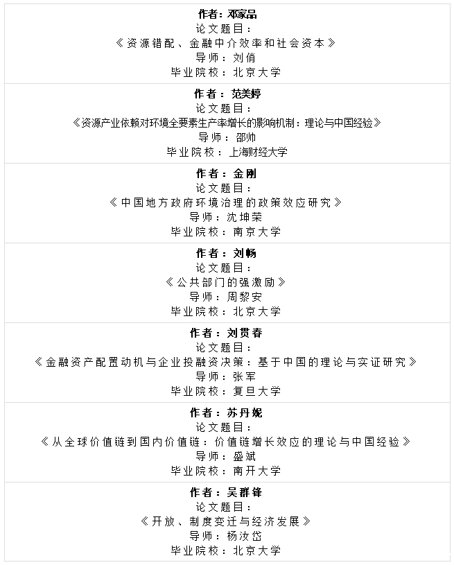 苏丹妮是我院第四位获此殊荣的博士,此前毛其淋副教授、许家云副教授、邵文波博士曾于2016年和2017年分别获得“中国经济学优秀博士学位论文奖”,指导教师分别为盛斌、佟家栋、李坤望教授。