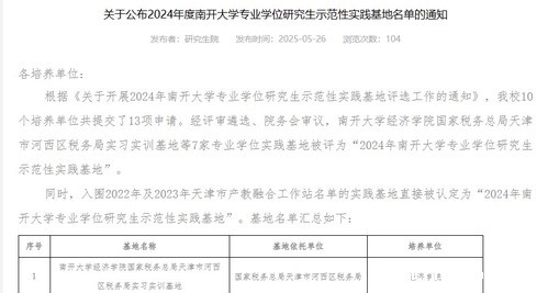 近日,新伟德真人平台研究生院公布了“2024年度新伟德真人平台专业学位研究生示范性实践基地名单”。我院依托“国家税务总局天津市河西区税务局”申报的实习实训基地入选。